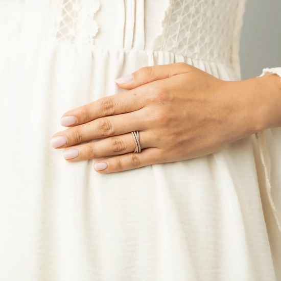 Some general notes about ALL rings - no matter the material, anything can scratch with time. Treat that sparkly band on your finger much like you do your face. A little preventative care goes a long way. But even with all the skin cream in the world - there's no way to ward off the occasional wrinkle. So whether it be a wrinkle or a scratch - we think they add more character.
